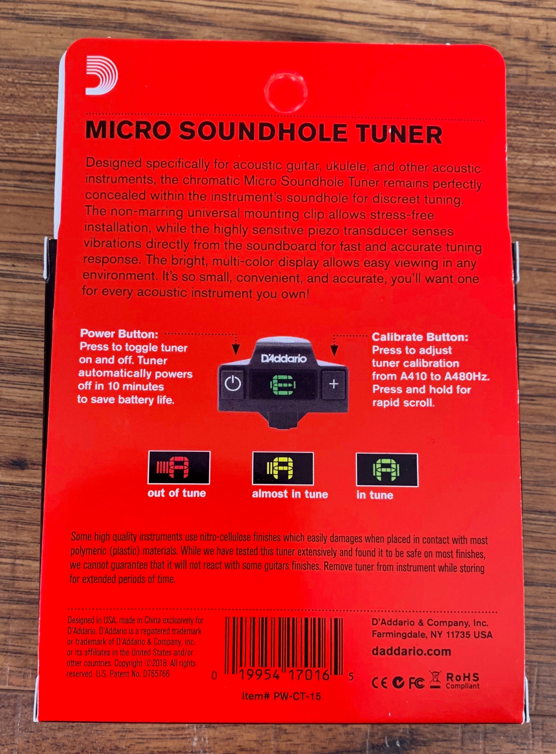 D'Addario Planet Waves PW-CT-15 Acoustic Guitar Soundhole Clip On Tuner