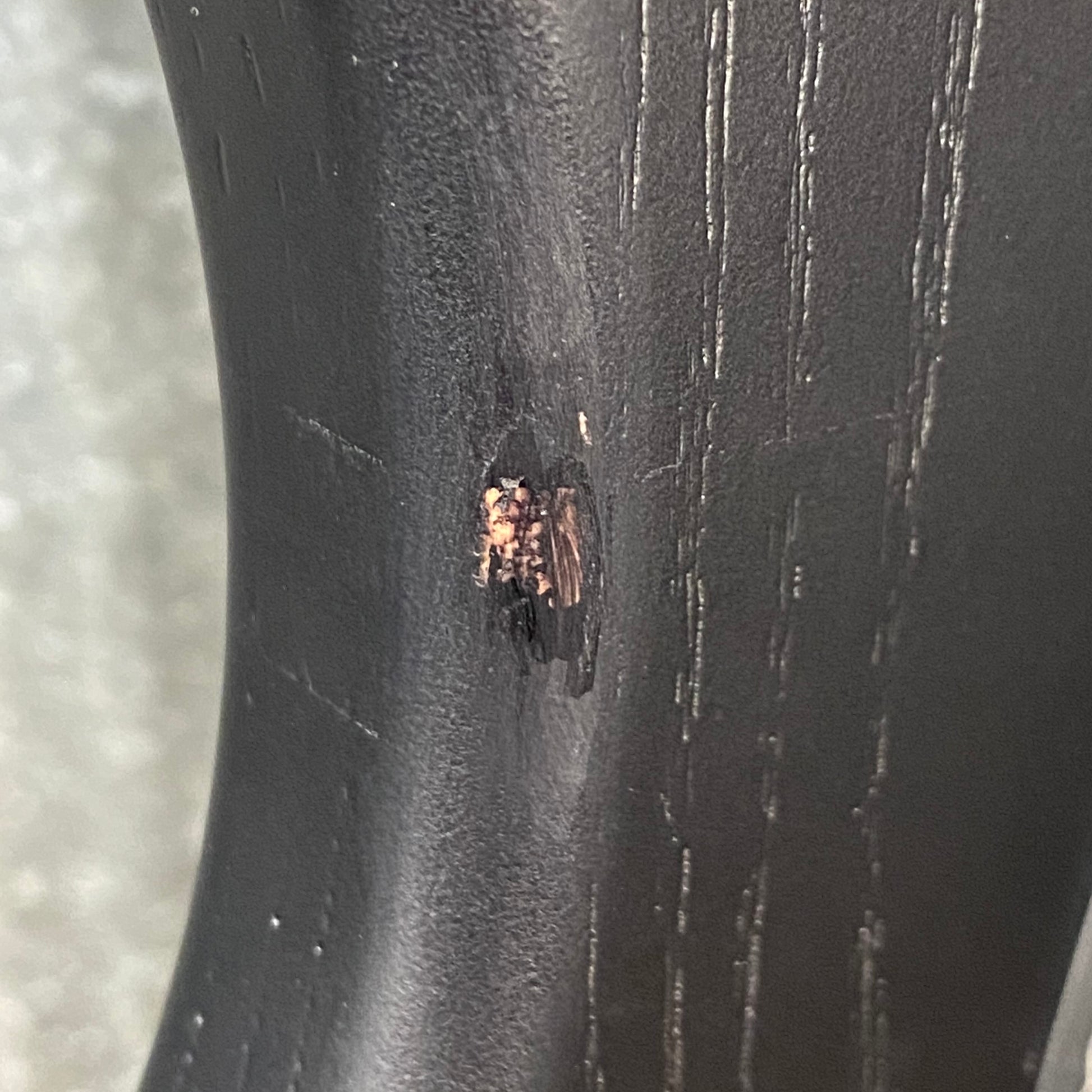 Mid left side of the body has a finish chip. Right side of the neck pocket also has a finish chip, and some rough finish around the route.