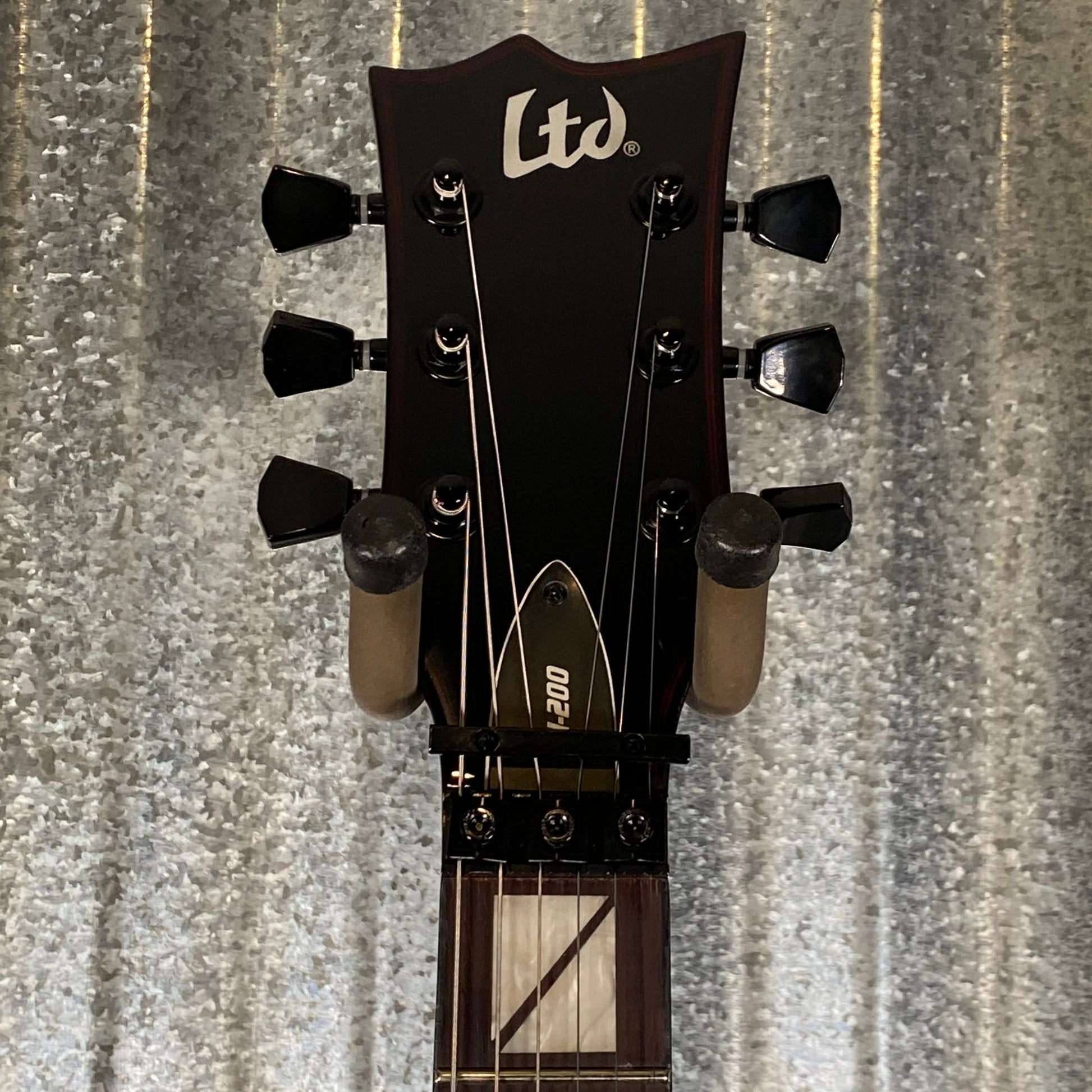 The LTD GH-200 represents the most affordable model in the Gary Holt Signature Series, but it packs a mean punch. It includes bolt-on constuction, with a comfortable basswood body and a thin U-shaped maple neck, with a roasted jatoba fingerboard that gives you Gary's split rectangle inlay design and 22 extra-jumbo frets. The GH-200 also offers an ESP Designed LH-301 pickup set with red covers, a Floyd Rose Special bridge for your most outrageous leads, and red binding on the body and headstock to complete its menacing vibe. Available in Black finish.