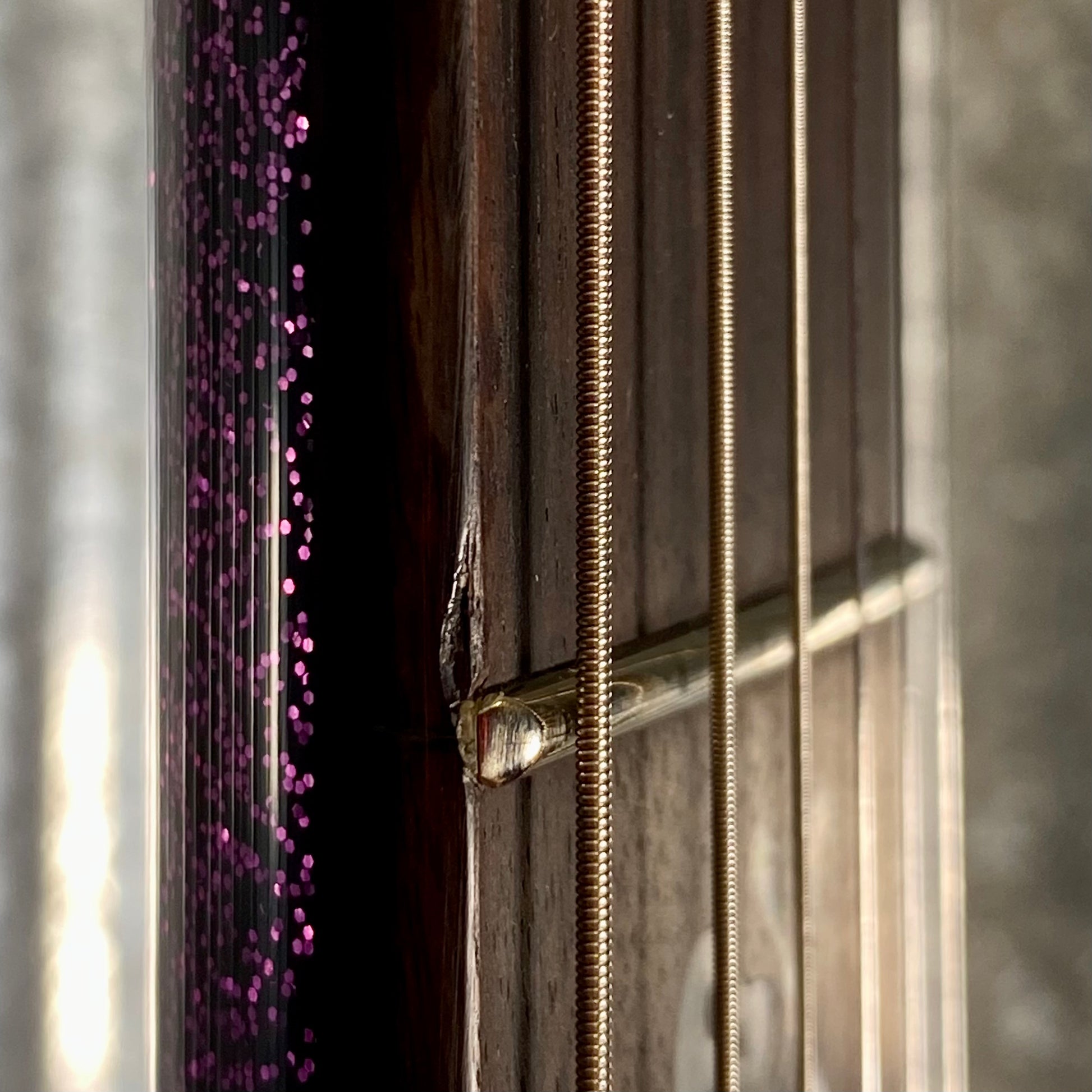 Left side of the fingerboard near the 4th fret is a small indentation, and a finish blemish.