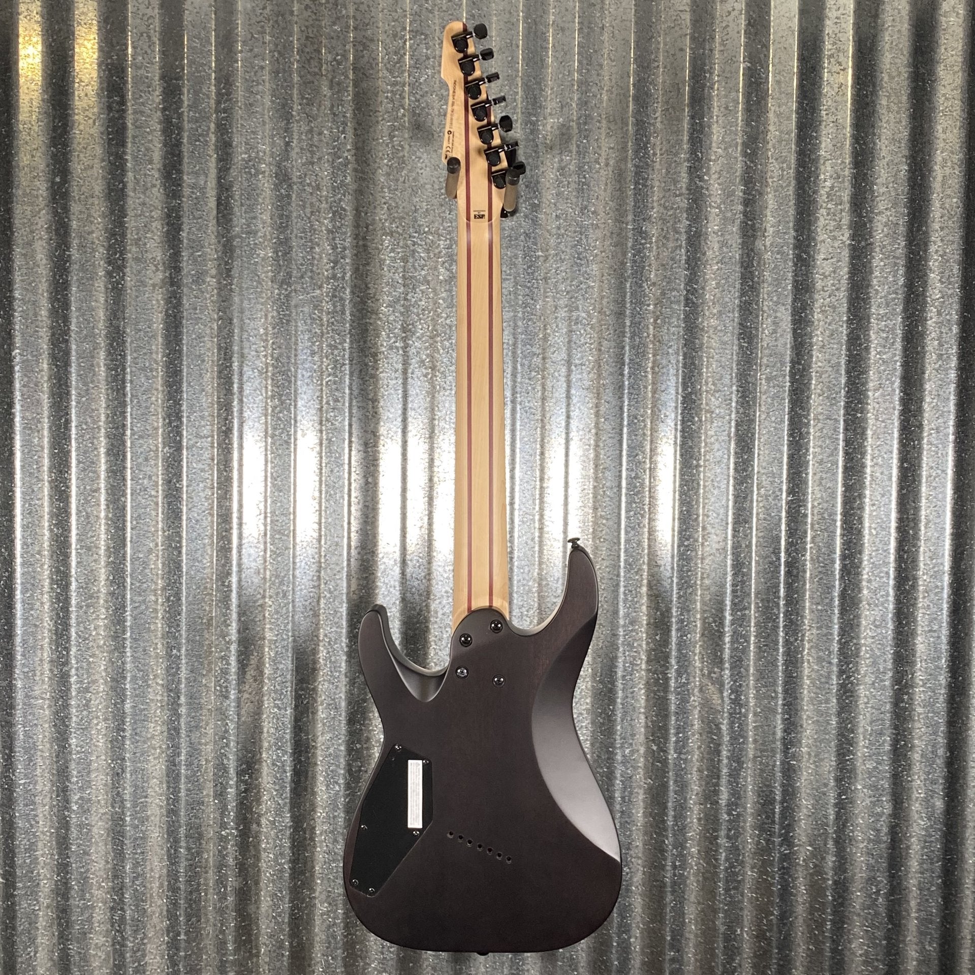 The LTD M-1007MS and M-1008MS are multi-scale guitars with the uncompromising playability and sonic power for which ESP is known worldwide. Multi-scale guitars make use of an angled fret arrangement to offer different scale lengths for the various strings of the guitar, allowing for optimal string tension, and has also been stated by many players to offer an ergonomic improvement for the fretting hand. Offering 7-string and 8-string arrangements respectively, the M-1007MS and M-1008MS have varying scale lengths of 27” - 25.5”. They are bolt-on designs with flamed maple tops over a lightweight mahogany back. Both models offer a five-piece neck made of maple and exotic purple heart wood, with a Macassar ebony fingerboard that includes offset abalone dot inlays. Top-tier components on the new M-1007MS and M-1008MS include a set of Seymour Duncan Nazgul and Sentient pickups that were custom-made for ESP with a special angled design and pole spacing optimized for the multi-scale design. A push-pull control on the tone knob allows for coil splitting, providing a wealth of flexible tones. Other components include a Hipshot multi-scale bridge and ESP locking tuners. Available in See Thru Black Satin finish.