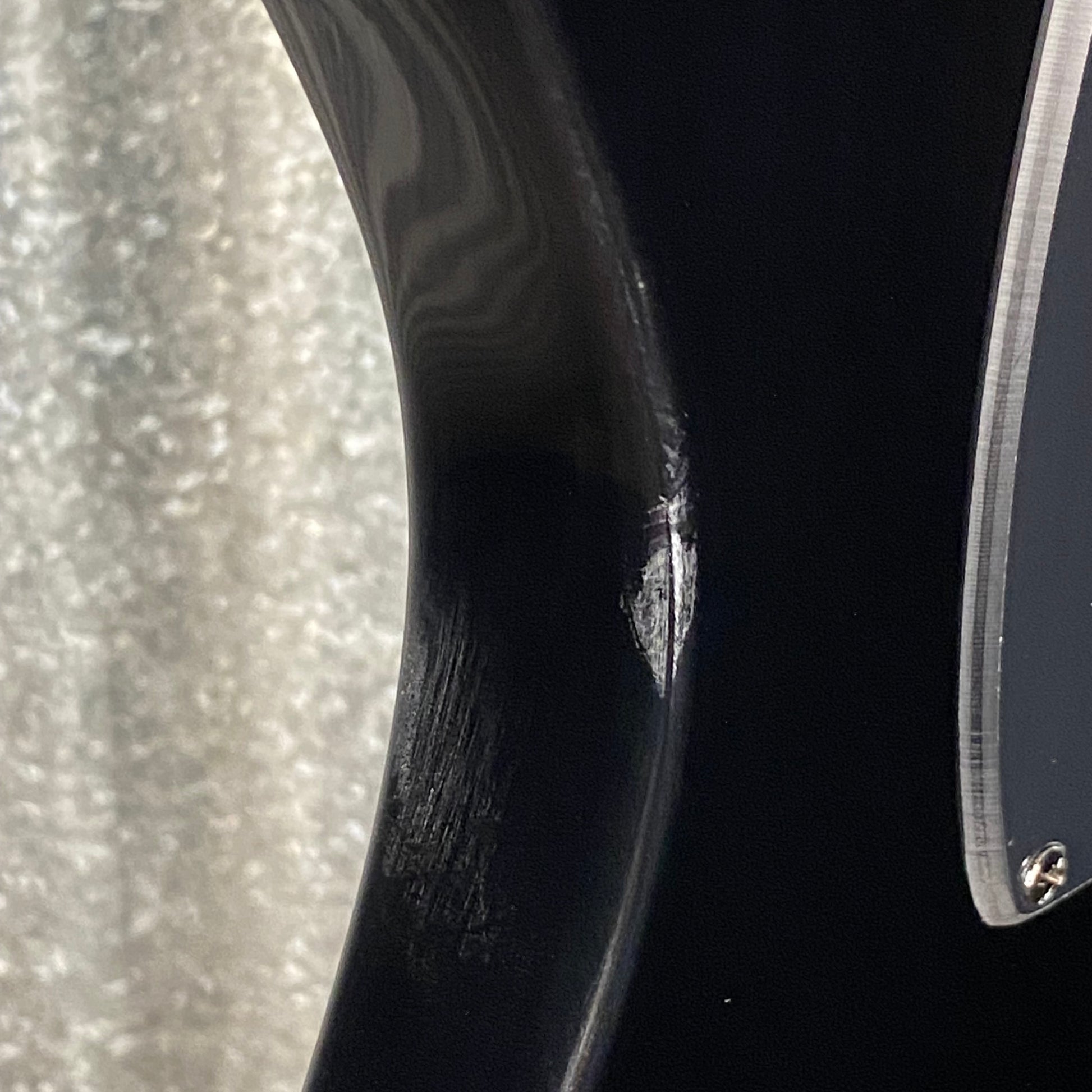 Left side of the body has some blemishes & scuff marks. There is a foggy finish haze on the back of the neck.
