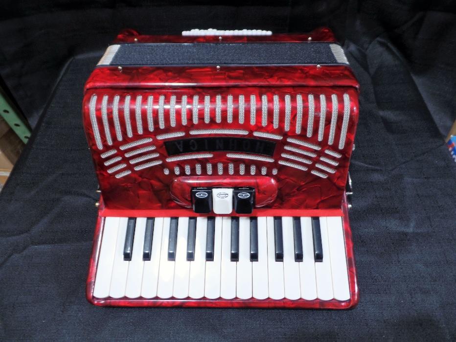 Hohner Hohnica 1304 Red Pearl Beginner 26 Key 48 Bass Accordion Case For Parts