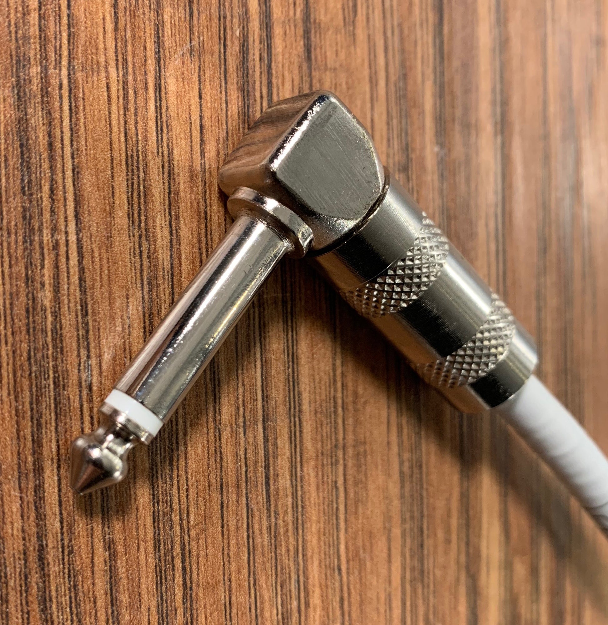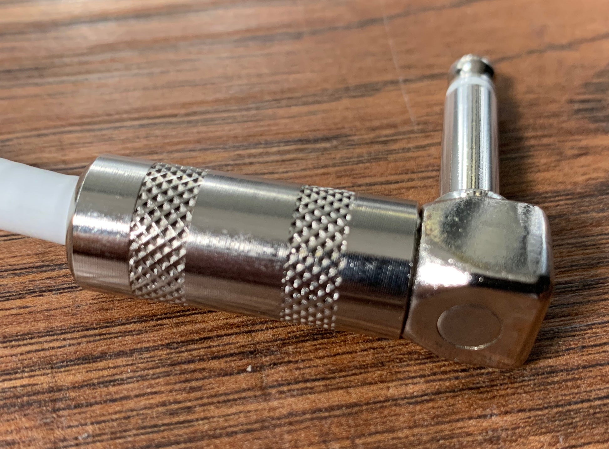 This cable is designed to interconnect electric guitar pedal effects. Right-angle plugs allow close spacing of pedal effects on pedalboards.