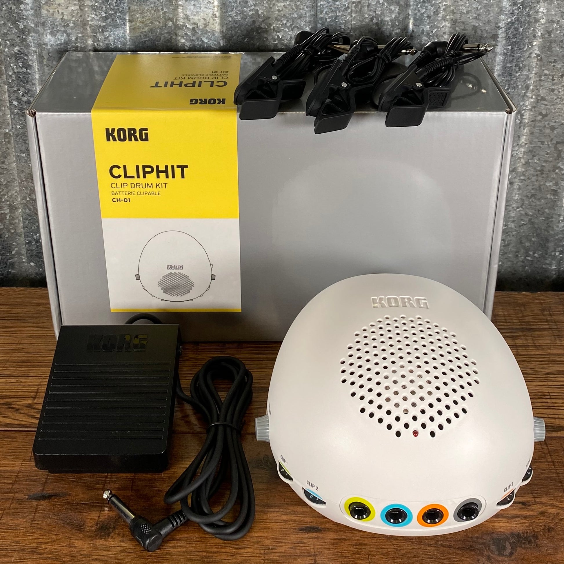Eleven different combinations are provided, including snare, hi-hat, toms, cymbals, bass drums. If you add an optional pedal switch, you'll be able to simultaneously play a total of five different sounds, three with the clips and two with the pedal, expanding your drum performance to hi-hat open/close or double bass. EFX programmed sounds such as conga, tambourine, hand-claps, and even dog barks are just some of the wide variety of sounds included in the CLIPHIT.