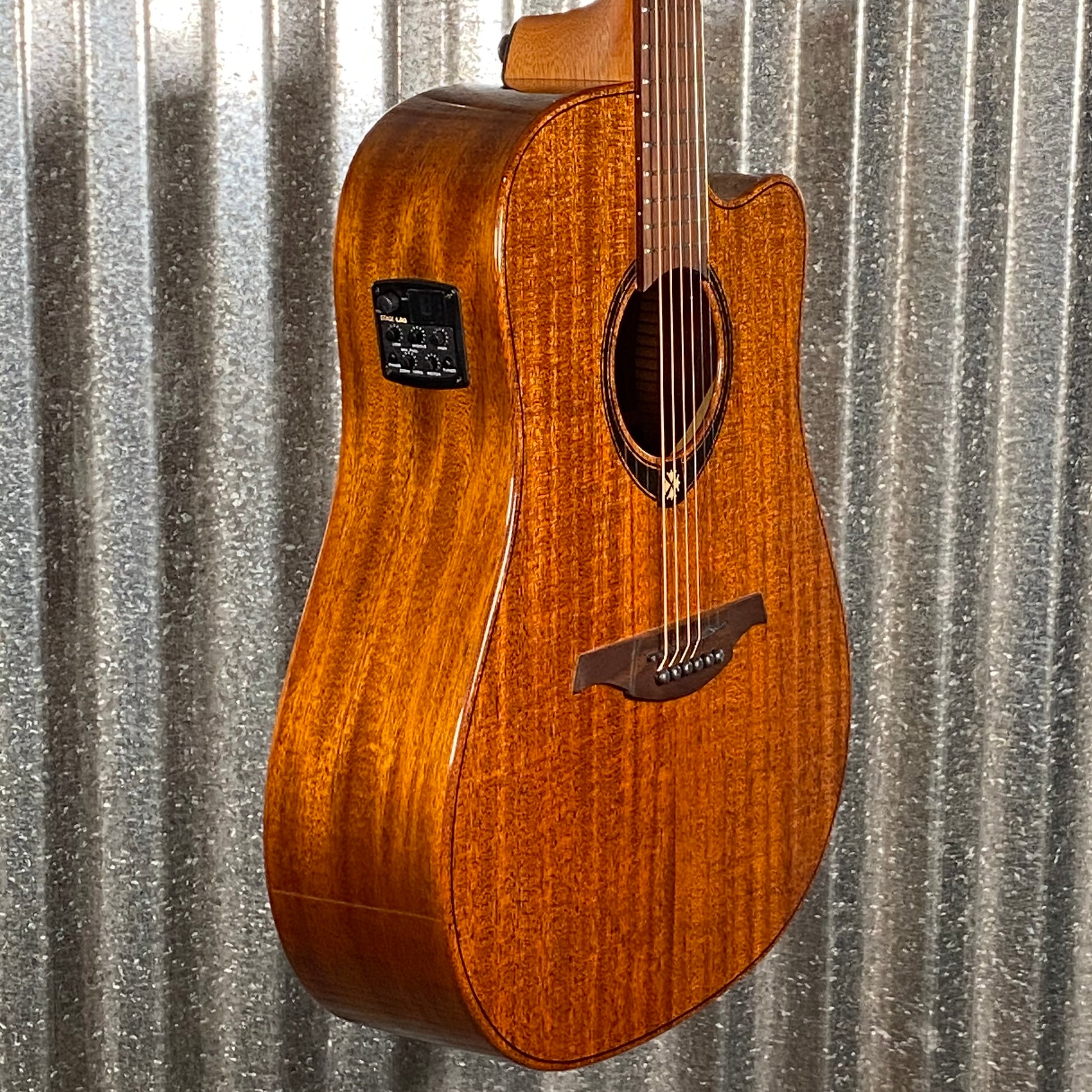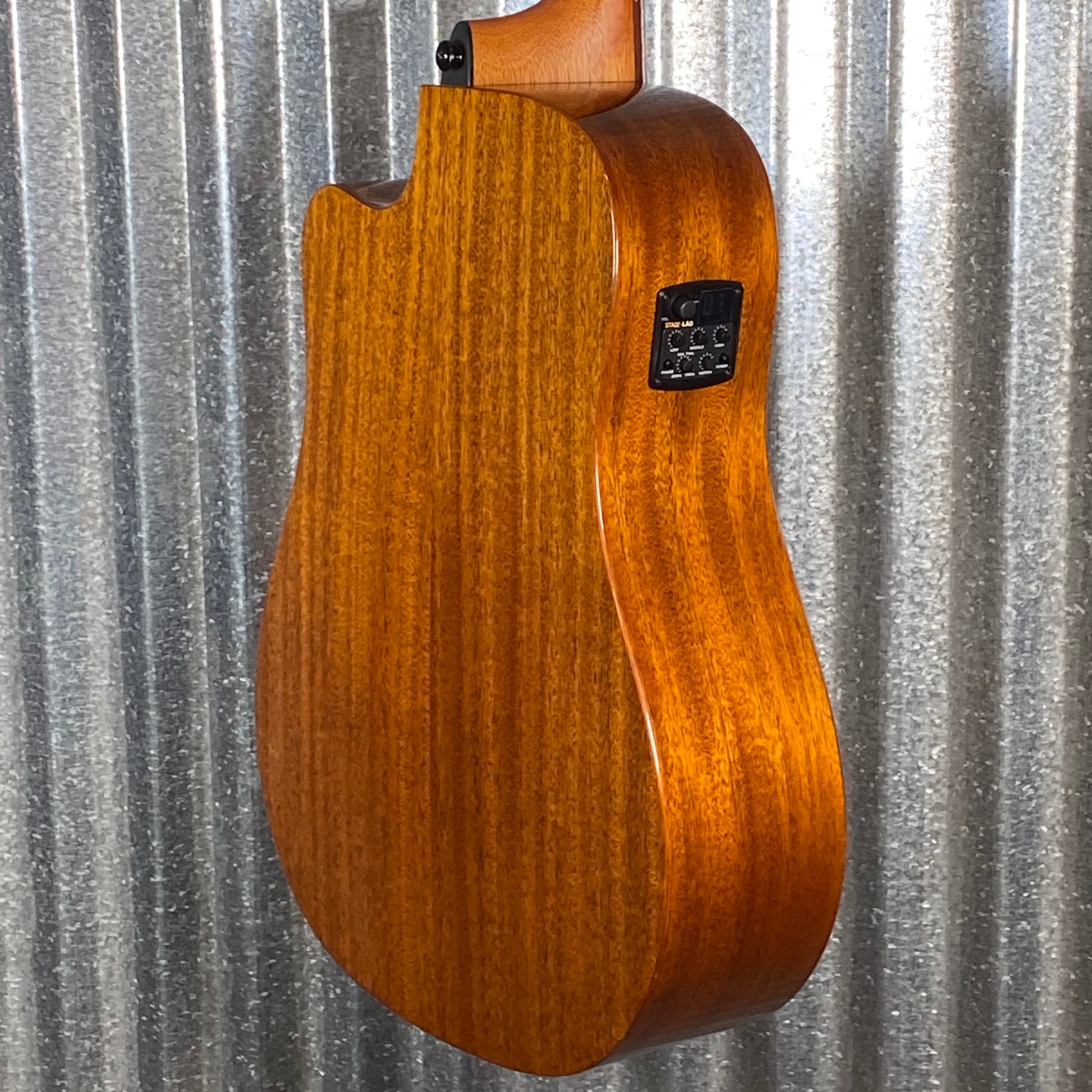 Specifications Body Format Dreadnought Top Solid khaya Mahogany Back&Sides Khaya Mahogany Bridge Brown Brankowood Colours Natural Finishing Glossy Cutaway Yes Neck Neck Khaya Fingerboard Brown BrankoWood Radius 350 mm Truss Rod Double-action Nbrs of frets 20 Types of frets Medium Silver Nickel Nut Width 43 mm Nut Black graphite wedge / 72 mm & 43 mm Scale (mm) 650 mm Headstock Brown BrankoWood Other Electronics Stage Lag (Volume, égaliseur 3-bandes, accordeur, phase, notch) Tuning pegs Die cast, ratio 1:18 Hardware Black Original Strings Coated Phosphore Bronze Light 12-52