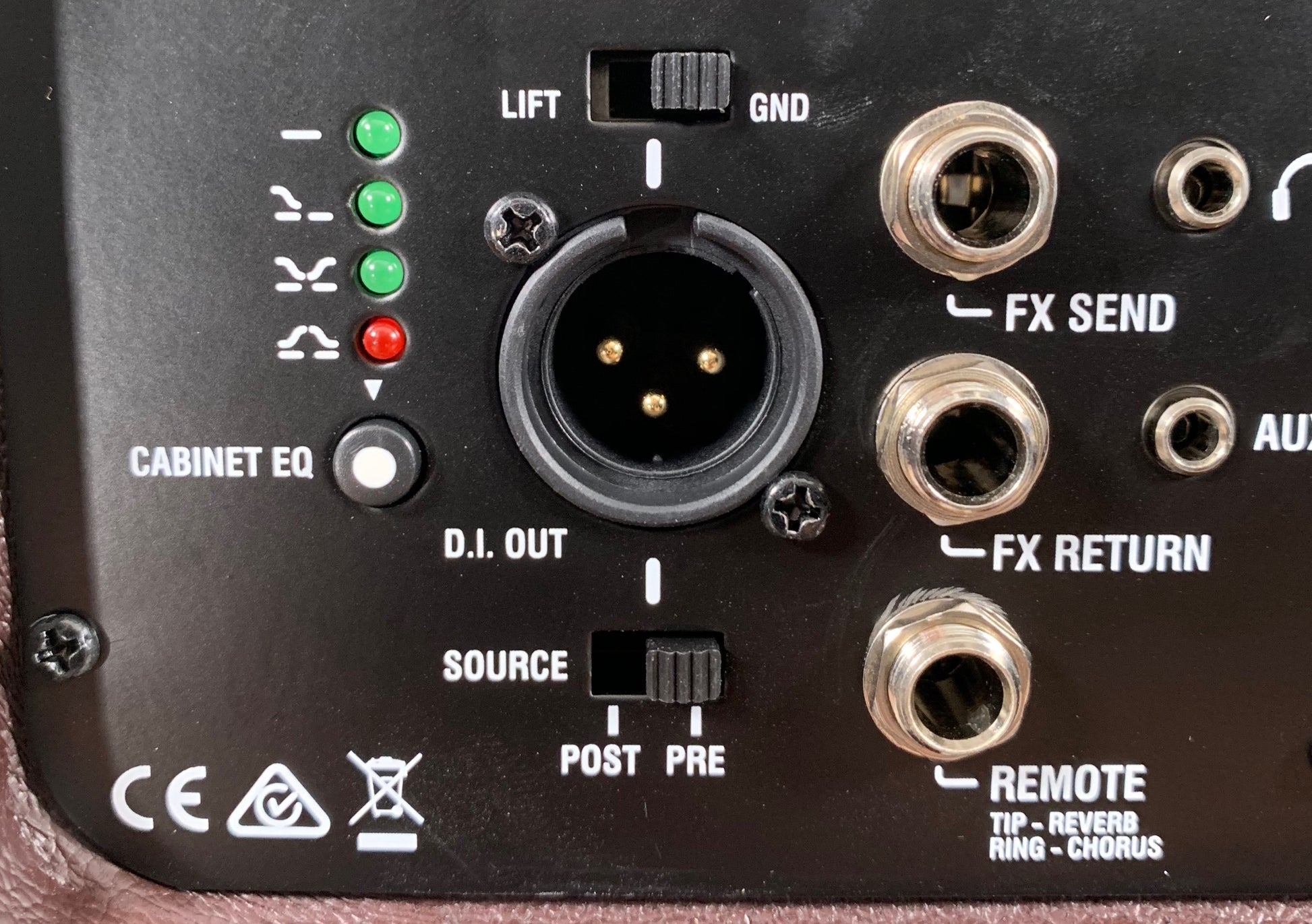 The XLR-DI out allows you to connect your amplifier to a PA system or recording interface, without the need for mic-ing. A ground lift switch allows you to reduce or remove any unwanted hum due to earth loops.
