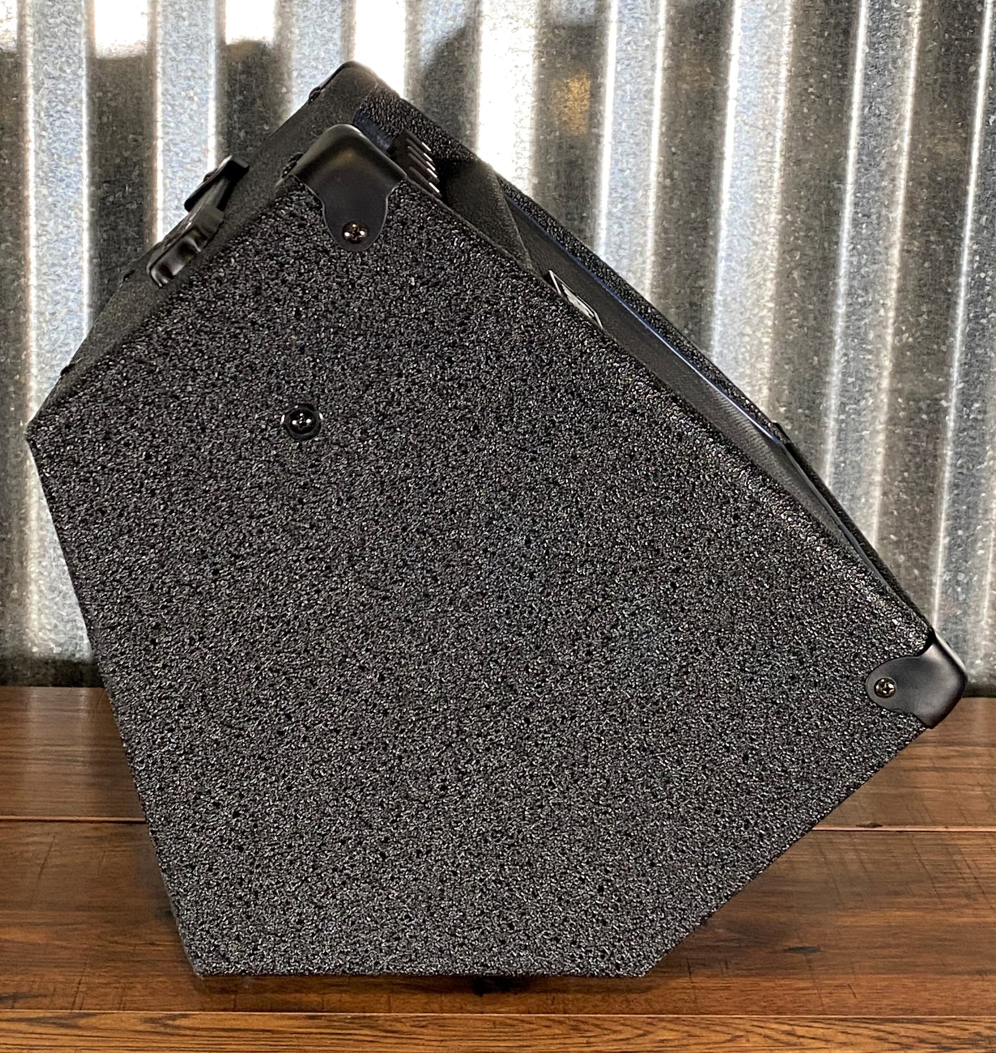 The amplifier can be used in two orientations depending on the requirements. Rather than being used in the conventional upright mode, If the amplifier is to be used up close to the player, then the amplifier can be used in a “kicked back” orientation, meaning that the amps output is directed more towards a player’s ears.