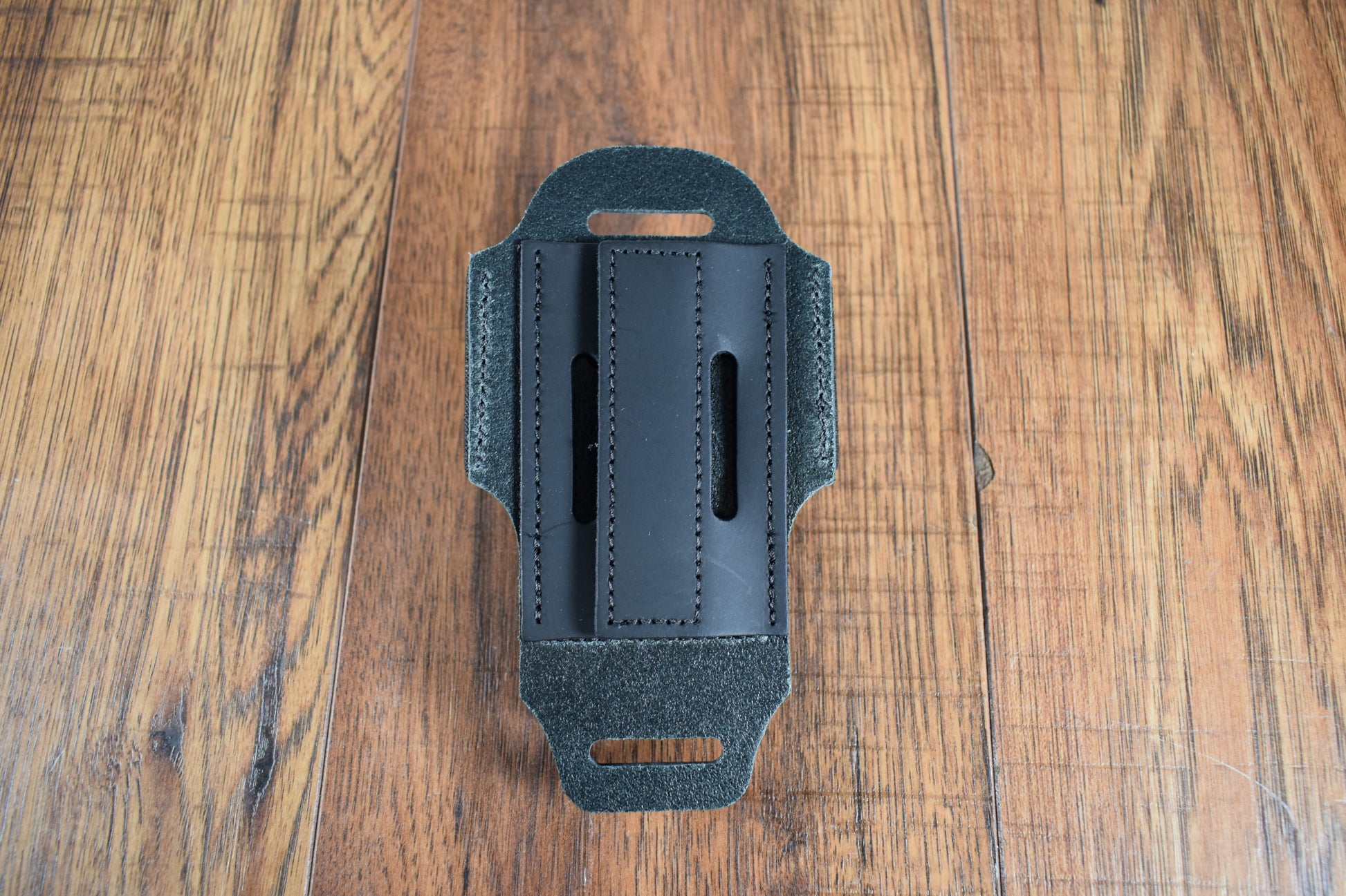 Wireless Transmitter Bodypack Holder – Black Leather Attaches Directly to Guitar Strap or to Belt in Vertical or Horizontal Position