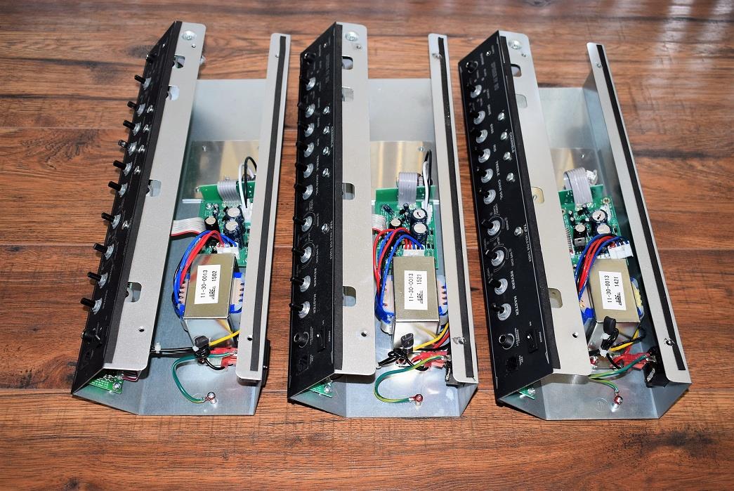 Four screws removed from one of the power amp sections, but otherwise, all circut boards are intact.  No knobs or 1/4" jack nuts.Â