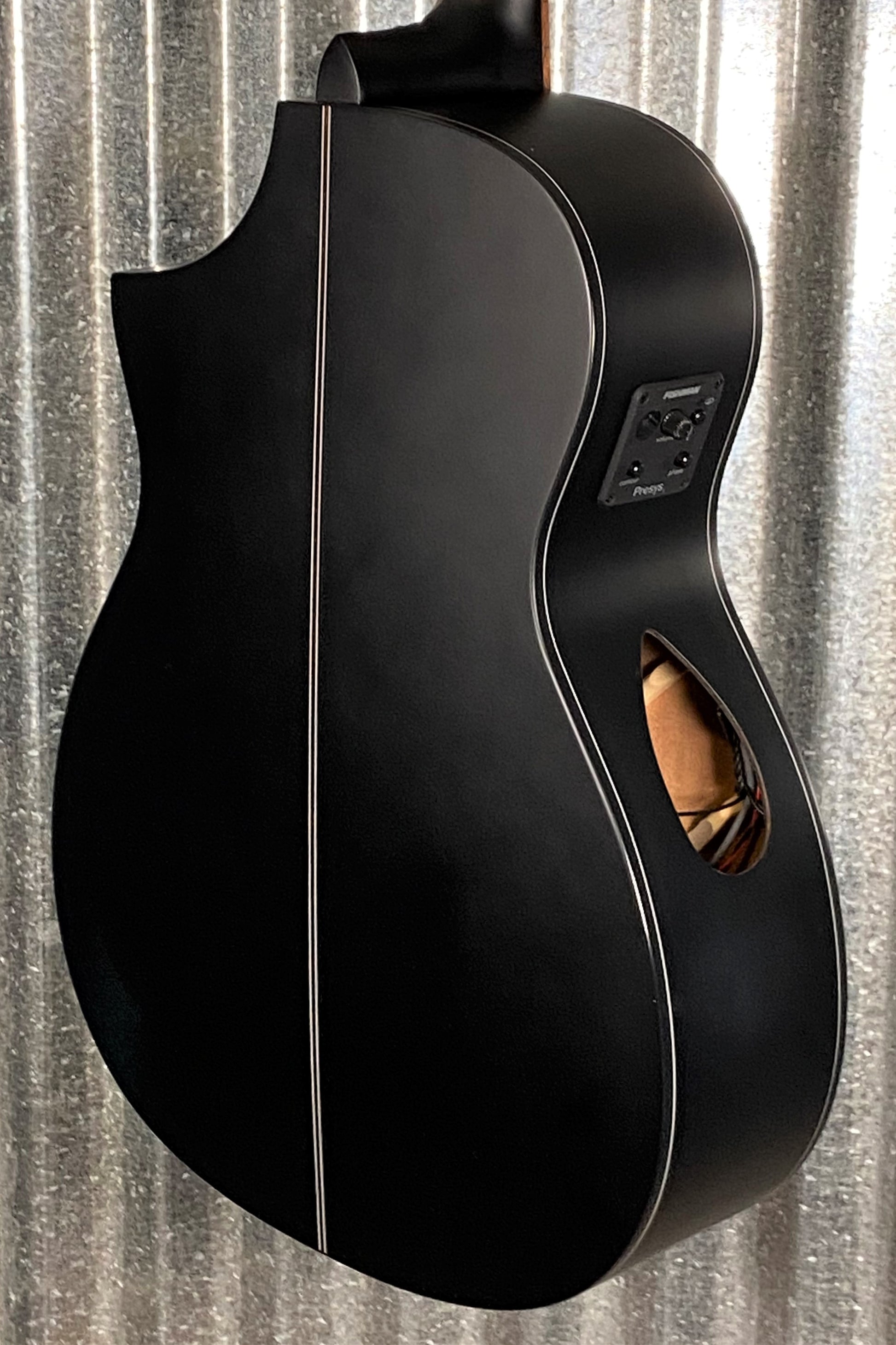 When you first lay eyes on the Forte Port Exotic JE you can not help but notice the striking appearance. That is thanks to the Java Ebony top. The styling is enhanced thanks to a bold satin black finish on the Okoume back and sides and the addition of black binding and hardware. The sonic performance is just as striking as the Forte Port Exotic's look. These woods combine to give you a full-bodied rich and deep tone. We further improve that performance via our Port Technology which positions the soundhole off center and opens up a larger soundboard.