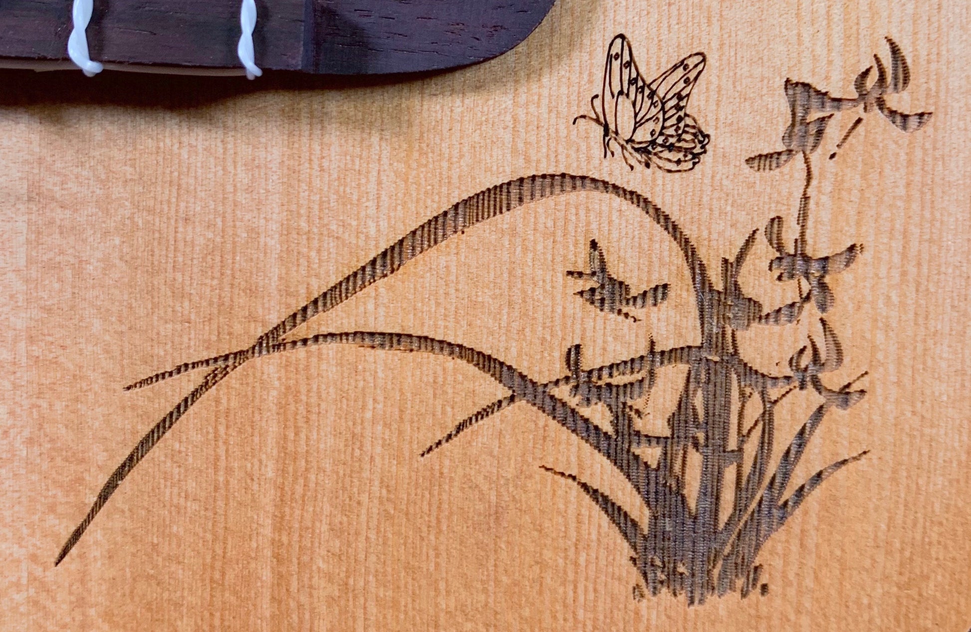 Spruce top with laser engraving