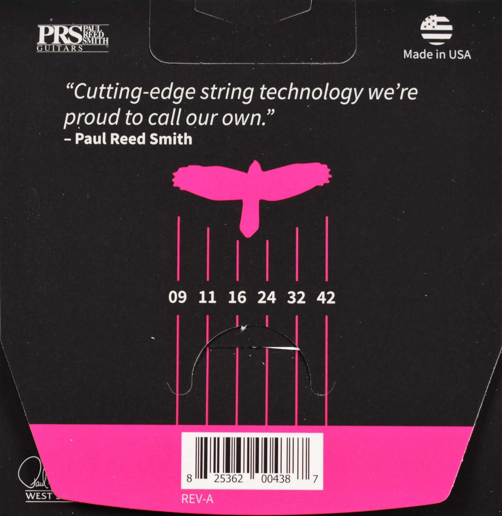 Made in the USA. Individual string gauges: .009, .011, .016, .024, .032, .042. .