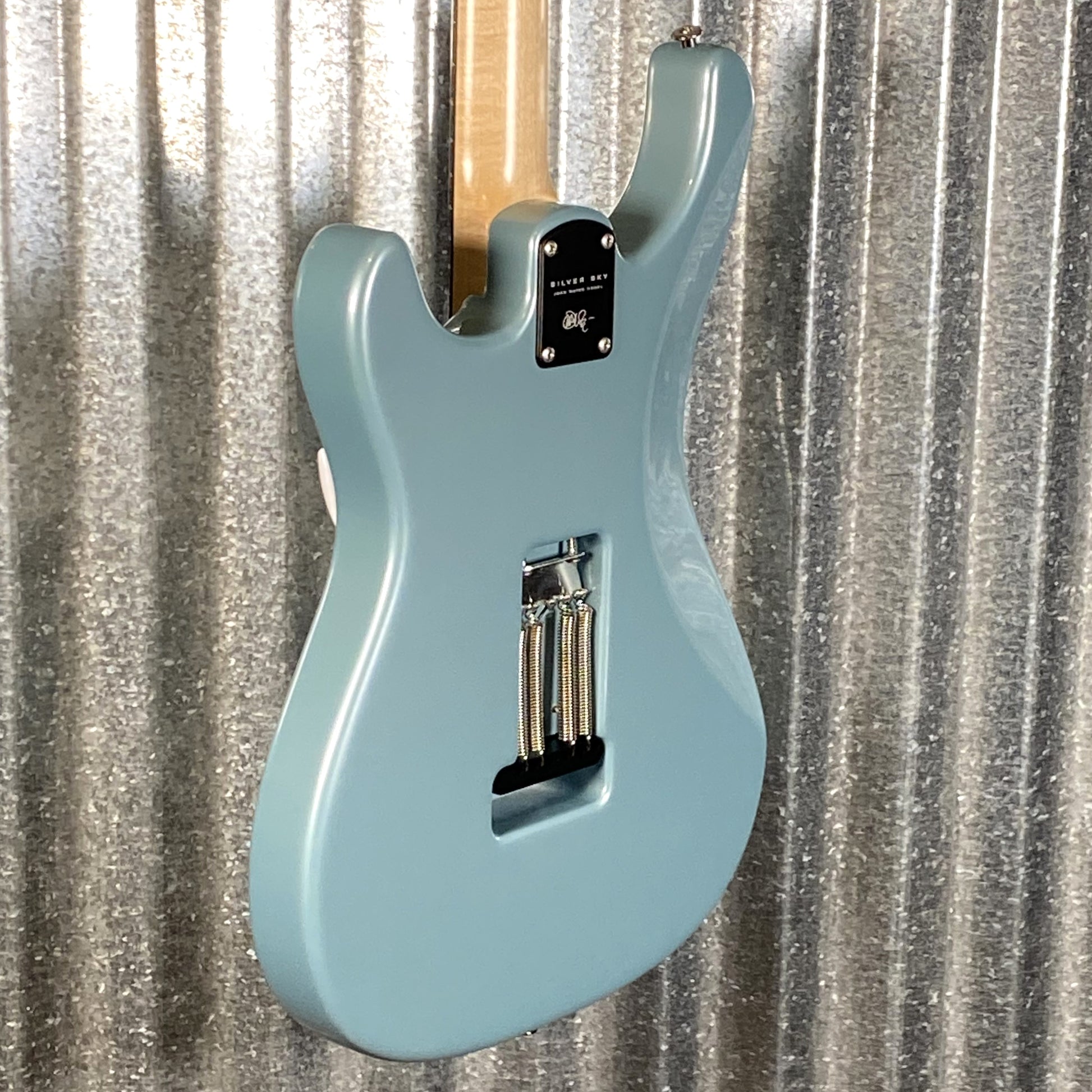 The PRS Silver Sky is the result of a close collaboration between Grammy Award-winning musician John Mayer and Paul Reed Smith. More than two and a half years in the making, the Silver Sky is a vintage-inspired instrument that is at once familiar but also newly PRS through and through. This model was based off of Mayer and Smith’s favorite elements from 1963 and 1964 vintage instruments, resulting in an idealized version of a vintage single-coil guitar. The attention that was paid to every detail sets this guitar apart.Some of the more distinctive specifications include, the headstock shape, tuners, neck and fretboard, bridge, and pickups and electronics. The headstock shape is based on PRS’s trademark design, but inverted to both accommodate Mayer’s playing style and also to keep a consistent length of string behind the nut, which makes staying in tune easier. The tuners are a traditional vintage-style, closed-back tuner, but with PRS’s locking design. The neck shape was modeled after 1963/1964 vintage instruments, and the fretboard has a 7.25” radius. The moment your hand grabs this neck, it just feels right. Like the tuners, the steel tremolo takes a classic design and incorporates PRS’s trem arm and Gen III knife-edge screws. The bridge on the Silver Sky is setup flush to the body in the neutral position so that the tremolo bridge only goes down in pitch. By keeping the bridge in contact with the body, the guitar itself is acoustically louder, which improves the signal to noise ratio of the single-coil pickups. The 635JM single-coil pickups are very round and full, with a musical high end that is never “ice-picky” or brash.