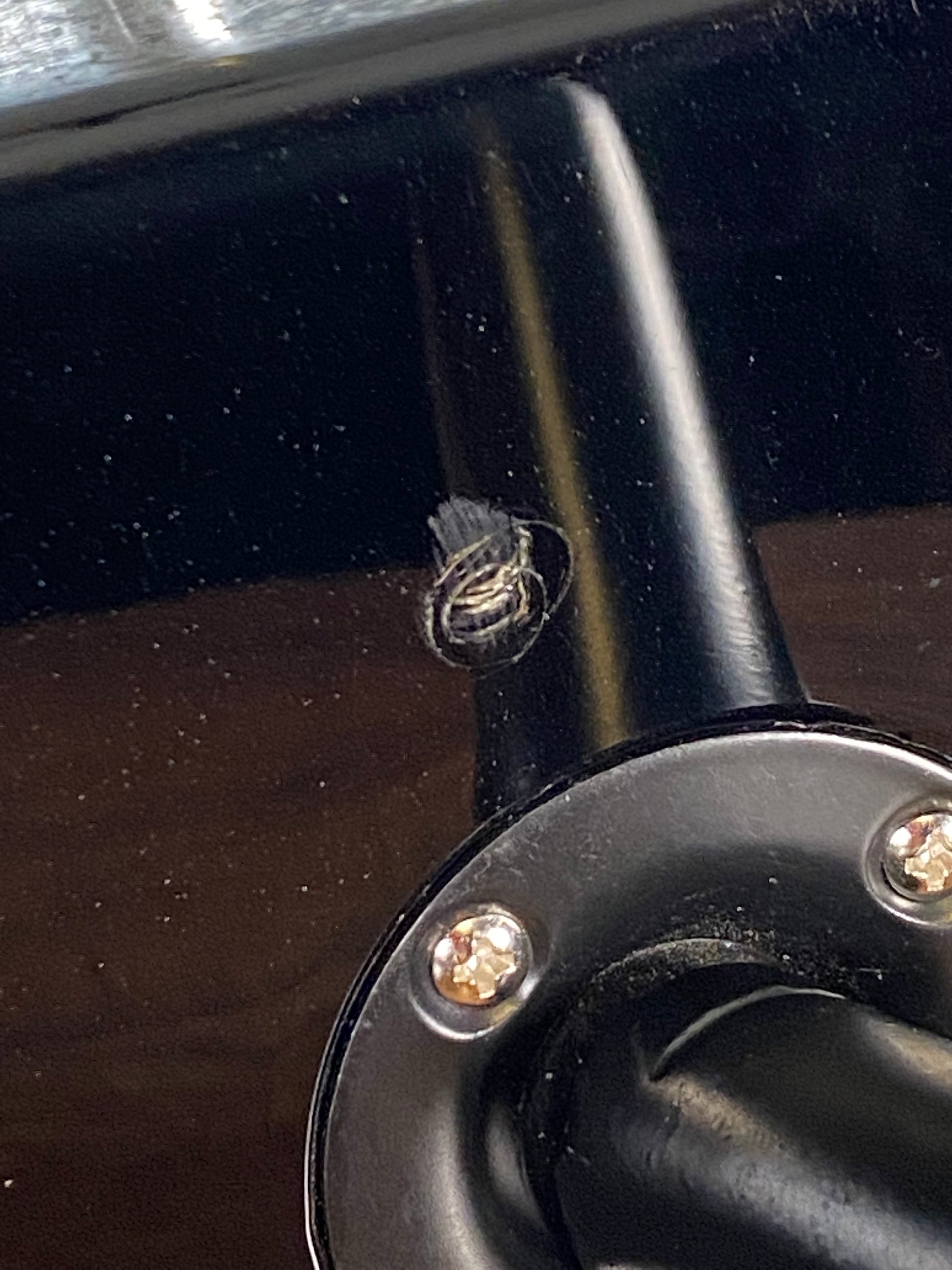Has some very light micro scratches that wouldn't show up in pictures. Bottom has a pea size indentation.