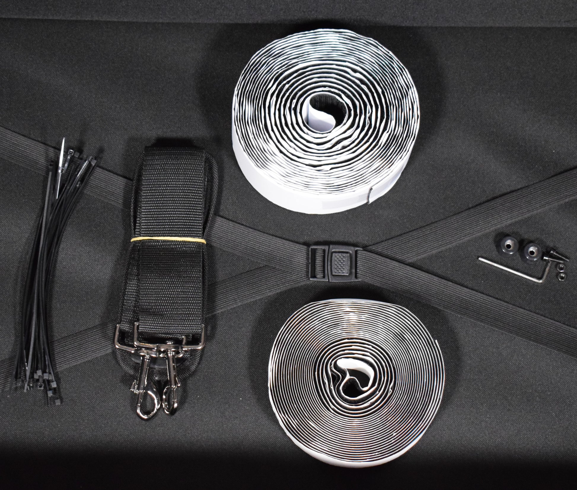 including self-adhesive hook (50 mm / 1 15/16" wide) & loop tape (25 mm / 1" wide) and cable ties