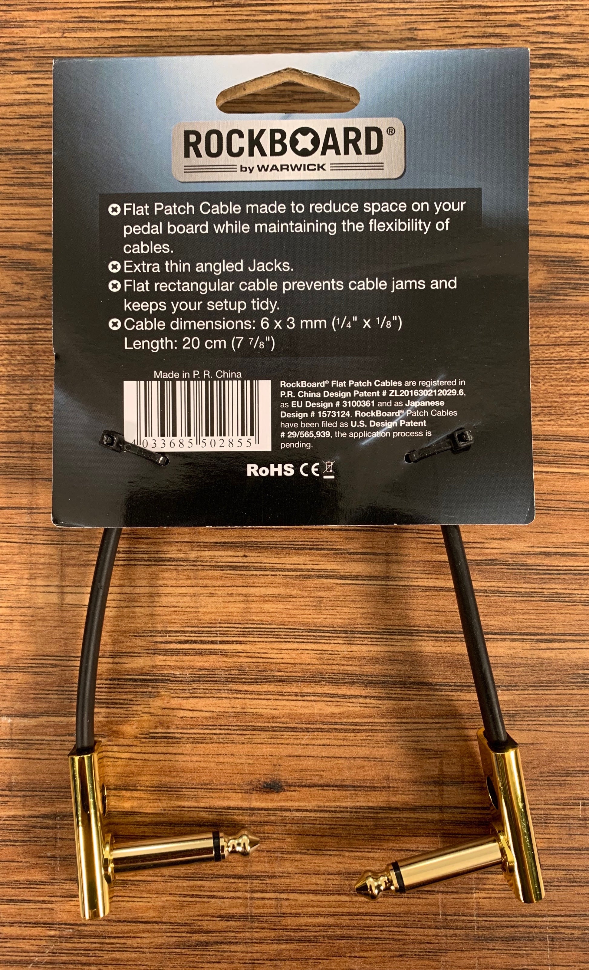 Warwick Rockboard Flat Patch Guitar Bass Pedalboard Cable 20 cm 7.87" Gold