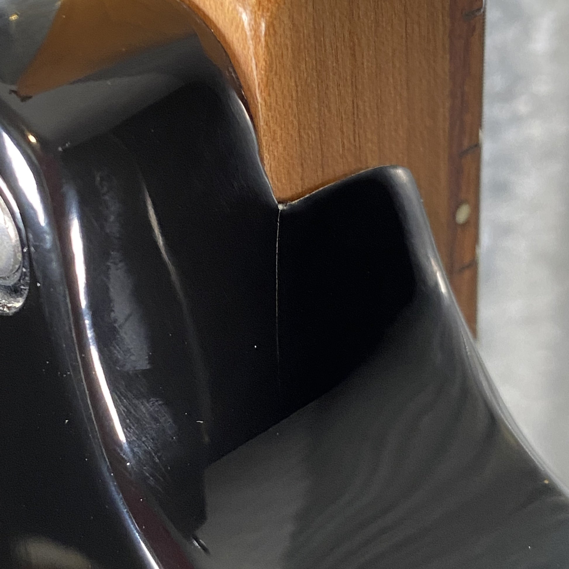 Back right side of the neck pocket is scuffed, and has a finish crack. Back lower right side of the body has a few small white specs in the finish that may be hard to see in pictures.
